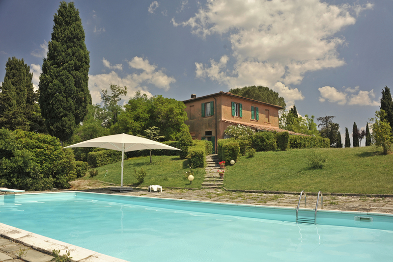 Das ca. 150 Jahre alte Haus auf dem Hügel gibt den Blick frei gegen Süden und Westen zu den Weinbergen, Norden und Osten gegen die sanften Hügel mit Getreidefedern. Das ehemalige Bauernhaus ist von vielen, teils alten Zypressen umgeben.